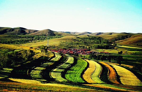 梯田是北方不多見的風光之一,如果不是草原天路,不知道還要跑多遠才能看到這樣的美景。夏天的顏色還只有翠綠色的單一,但依然能看得見分明的層次。