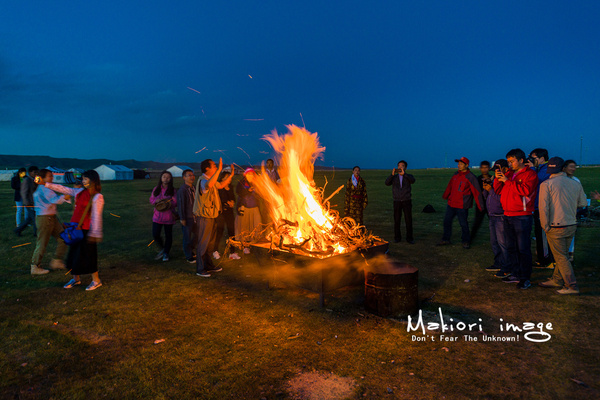 夜色襲來,天空的云彩也被陽光染上了一層緋紅,大地開始沉睡,山上放牧歸來的牛羊時(shí)不時(shí)發(fā)出幾聲叫喚。但是,一場別開生面的草原party卻即將上演。
