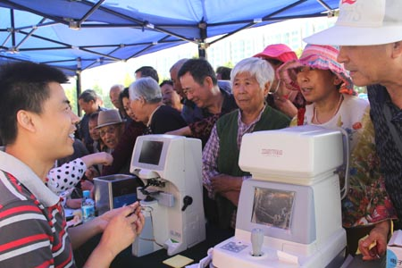 活動開始后,大量的市民又陸續(xù)來到活動現(xiàn)場。血壓計(jì)檢測臺前已被市民圍的水泄不通。在免費(fèi)驗(yàn)光臺前,前來驗(yàn)光的居民排起了長隊(duì)。工作人員一邊將驗(yàn)光結(jié)果逐一向居民做著講解,一邊向居民介紹用眼護(hù)眼常識。咨詢四表檢測、室內(nèi)空氣質(zhì)量等相關(guān)問題的居民也是絡(luò)繹不絕。